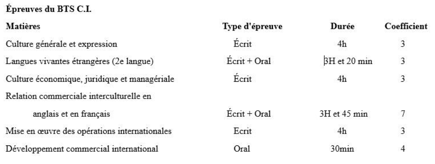 Épreuves du BTS CI